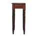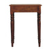 • Chestnut Turned Leg Writing Desk - This one drawer writing desk is constructed from 100% solid mango wood and has a fine chestnut finish. Other features include hand-carved flute legs to add to the vintage French style and a shiny brass knob for easy access into the drawer. The perfect addition to any home.