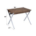 - Sleek Modern Design: The writing desk boasts a weathered oak wooden top with a paper veneer finish, complemented by chrome-finished "X"-shaped metal legs, creating a stylish and contemporary aesthetic.