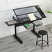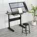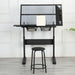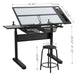 Hand Crank Adjustable Drafting Table Drawing Desk With 2 Metal Drawers With Stool - Black