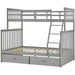 Wooden Twin Over Full Bunk Bed With Storage Drawers, Ladder, And Safety Guard Rails - Gray