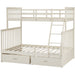 Wooden Twin Over Full Bunk Bed With Storage Drawers Safety Guard Rails And Ladder - Cream