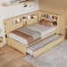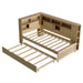 Twin Size Daybed With Storage Shelves, USB Charging, And Trundle Bed - Natural