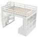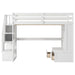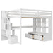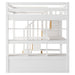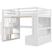 Full Size Loft Bed With Desk And Shelves, 2 Built In Drawers, Storage Staircase - White