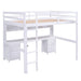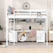 Full Size Loft Bed With Desk, Cabinets, Drawers, Charging Station And Bedside Tray, Sturdy Frame, No Box Spring Required - White