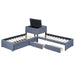 L-Shaped Upholstered Twin Platform Bed With Trundle And 2 Drawers Linked With Built In Desk - Gray