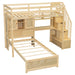 Twin Over Twin Loft Bed With Built In Desk And Staircase - Natural