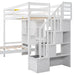 Twin Over Twin Loft Bed With Built In Desk And Staircase - White