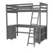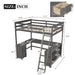 Full Size Loft Bed & U-Shaped Desk, Drawers, And Storage Shelves - Antique Brown