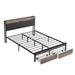 Full Size Modern Metal Platform Bed Frame With Upholstered Headboard, USB Liner, And Storage Drawers - Black / Gray