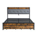 Modern Full Bed Frame With LED Lights, Upholstered Headboard, Storage Drawers, USB Charging - Brown / Gray