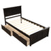 Platform Storage Bed With 2 Wheel Base Drawers, Twin Size - Espresso