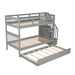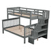 Twin Over Full Stairway Bunk Bed With Drawer, Storage And Guard Rail For Bedroom - Gray