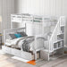 Twin Over Full Bunk Bed Stairway With Storage And Guard Rail For Bedroom - White