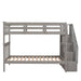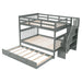 Twin Over Full Bunk Bed Stairway With Storage And Guard Rail For Bedroom - Gray