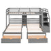 Twin Over Twin & Twin Bunk Bed With Drawers, Staircase Storage, Built In Shelves - Gray