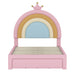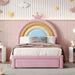 Twin Size Upholstered Rainbow Design Bed, Velvet Princess Platform Bed With Storage Drawer, No Box - Spring Needed - Colorful / Pink