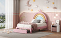 Full Size Upholstered Rainbow Design Bed, Velvet Princess Platform Bed With Storage Drawer, No Box - Spring Needed - Colorful / Pink