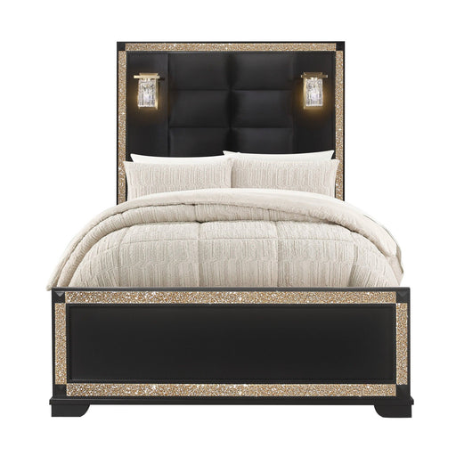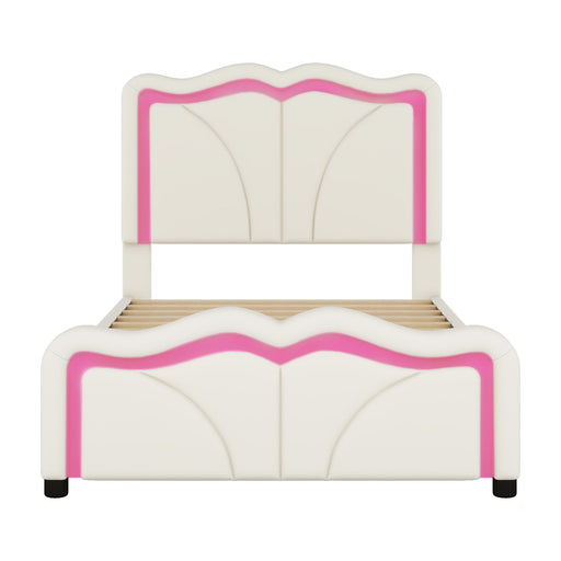 LED Light Accents Highlight Design: Modern design with LED accents on the headboard for a contemporary touch. "Jewel" Tufted Faux Leather Panel:...