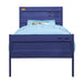 The Cargo youth bed is the perfect addition to any child’s room. This contemporary container themed metal bed features a panel headboard with low profile footboard, crafted with an industrial look that is an perfect match for your bedroom.