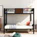 Full Over Full Bunk Bed Modern Style Steel Frame Bunk Bed With Safety Rail, Built-In Ladder For Bedroom - Brown