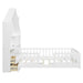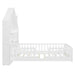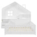 Full Size House Bed With Window And Bedside Drawers, Platform Bed With Shelves And A Set Of Sockets And USB Port - White