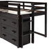 Crafted with high grade manufactured pinewood, enjoy the Loft bed in the shades espresso, gray and to match the color scheme of any room. Designed with a loft structure, enjoy the space underneath used to house storage drawers. Three wide drawers provide plenty of storage options for you to help keep their space tidy and organized. The built-in two rung ladder provides easy access to the d bed featuring length safety guardrails.