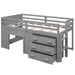Twin Size Loft Bed With Cabinet And Shelf - Gray