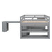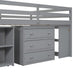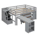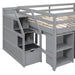 Full Size Loft Bed With Retractable Writing Desk And 3 Drawers With Storage Stairs And Shelves - Gray