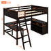 Full Size Loft Bed With Shelves With Desk - Espresso