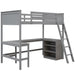 Twin Size Loft Bed With Shelves With Desk - Gray