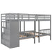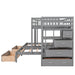 Full Over Twin & Twin Classic Triple Bunk Bed With Drawers And Guardrails - Gray