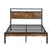 Twin Size Metal Platform Bed Frame With Wooden Headboard And Footboard USB Liner - Black / Brown