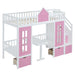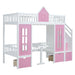 Twin Over Twin Bunk Bed With Changeable Table, Bunk Bed Turn Into Upper Bed And Down Desk - Pink