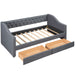 Twin Size Upholstered Daybed With Two Drawers, Slat Support - Gray