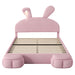 Full Size Upholstered Platform Bed With Cartoon Ears Headboard And Built In LED Light - Pink
