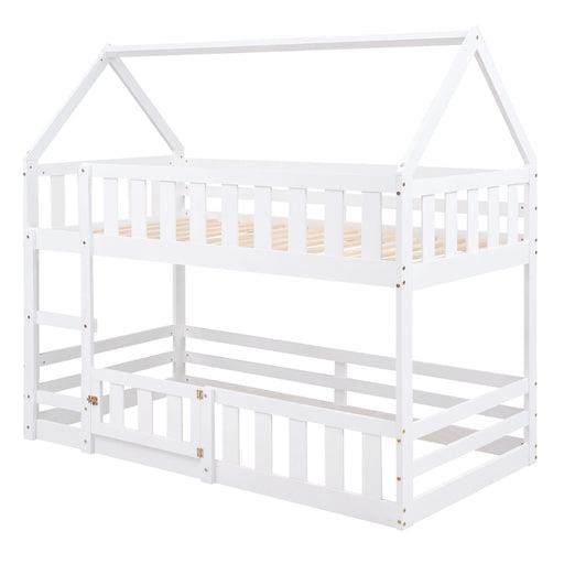 Loft Bunk Bed With Playhouse, Farmhouse, Ladder, Slide And Guardrails