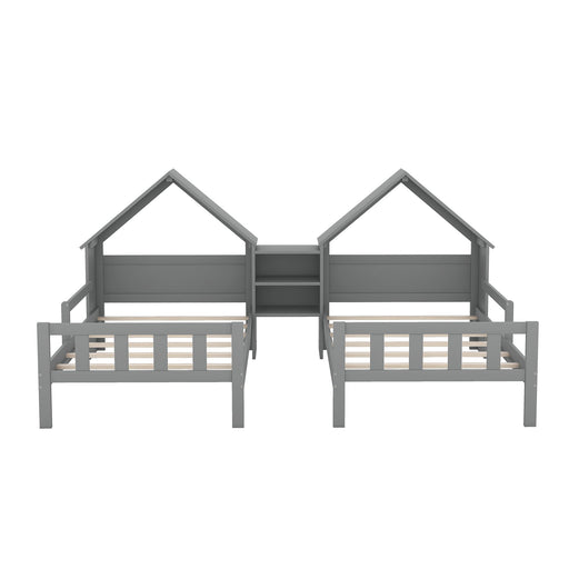 2 in 1 Shared Design: Two twin beds placed side by side with guardrails between them for safety and shared use House-Shaped Aesthetic: Unique roof...