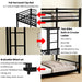 Twin Over Twin Bunk Bed, Heavy Duty Sturdy Design With Safety Guardrail, Noise Reduced - Black