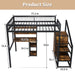 Full Size Loft Bed With Desk & Wardrobe Heavy Frame, Built In Staircase, Storage Rack & Shelves Gaming Bed - Black