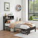 Twin Size Metal Platform Bed Frame With Storage Headboard And Charging Station - Black