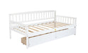 Twin Size Pine Wood Daybed With Two Storage Drawers, Sofa Bed With Bed Platform Of 10 Support Slats - White