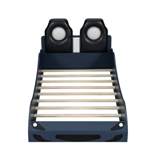 Comfortable Design: Upholstered backrests at the head of the bed provide comfort while reading or watching TV Race Car Bed: Bold race car silhouet...