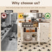 - Large & Smart Storage: Features three spacious drawers and concealed cabinets made of durable MDF, perfect for storing appliances, pots, and utensils. Includes a spice rack and towel bar for complete kitchen organization.