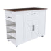Rustic Movable Kitchen Island On Wheels With Storage & Power Outlet - White