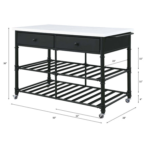Rorratt - Kitchen Island - Marble Top & WhiteProduct Features KD Rectangular Kitchen Island Storage: 2 Drawers & 2 Tier Shelves Full Extens...