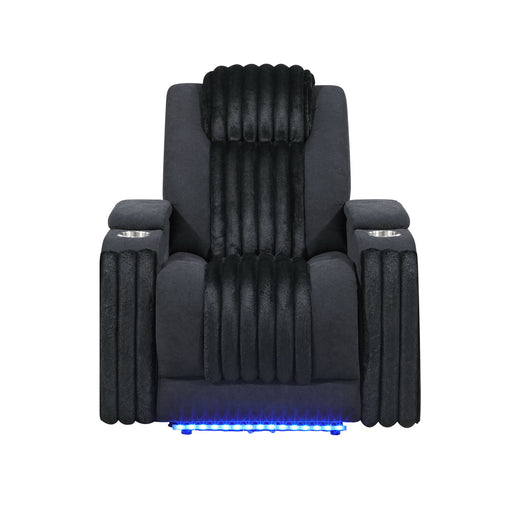 Elonzo - Power Motion Recliner With LED, Power Headrest & Speaker - Light GrayProduct Features Seat Construction: Pocket Coil Wooden Inner Fram...