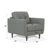 Assembled, Loose Back & Tight Seat Cushion (1+1), Button Tufted •• CONSTRUCTION •• SEAT: Webbing; Inside Frame: Wood, Contrast Tone Stitching, Box Cushion • BACKREST: Button Tufted Cushion • ARMREST: Flared Style, Arm Size: 5 Inches • Wooden Tapered LEG: Dark Walnut Finish; Leg Size: 6 Inches ••• Material: Leather (Solid Pattern) • Pillow NOT Included