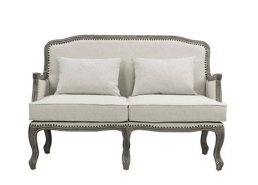 Chelmsford - Loveseat With 2 Pillows - Beige Fabric & Antique TaupeProduct Features Assembled, w/2 Pillows Button Tufted Backrest (Camel-Back S...