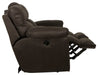 ATLAS loveseat has an extra-wide two-seat design covered in a premium polyester fabric and features a convenient Storage Console with Pewter finished cupholders on the Reclining Loveseat.