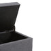 - Features large interior storage space with child safety hinge to prevent lid slamming